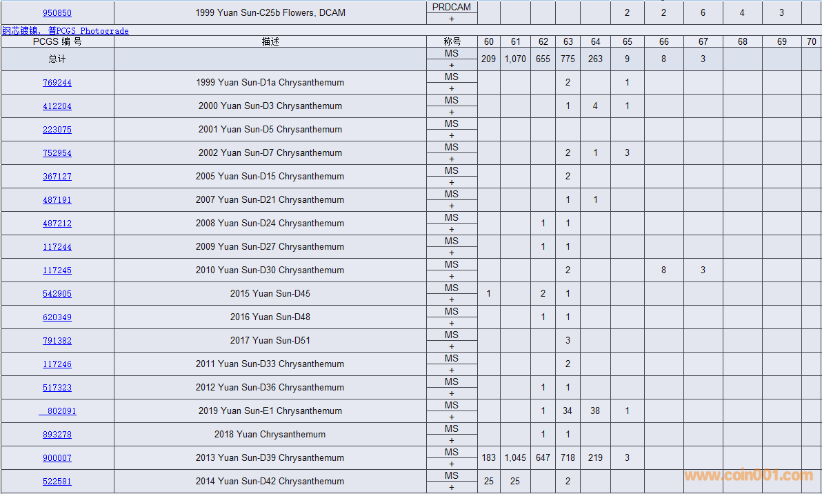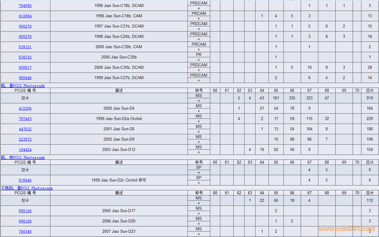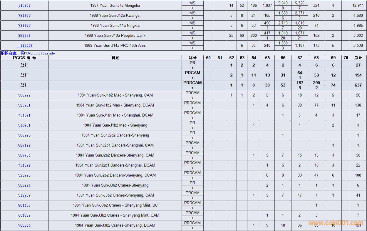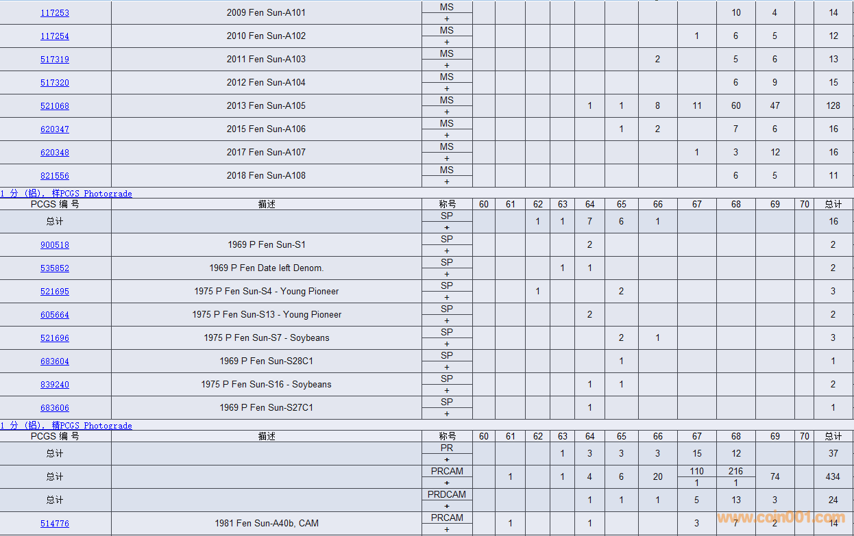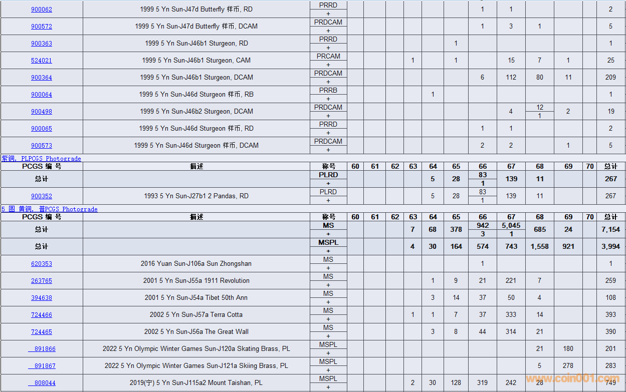 PCGS硬幣評(píng)級(jí)數(shù)量報(bào)告( ..