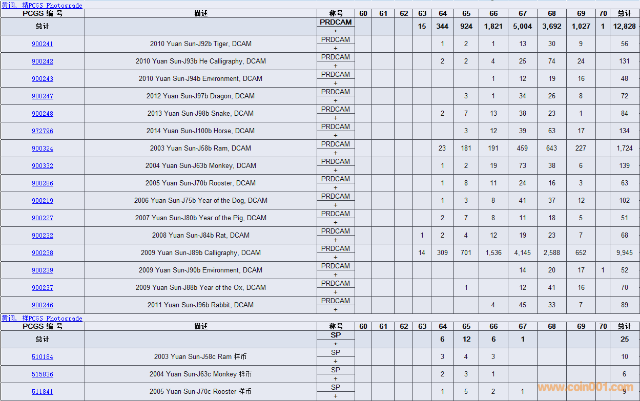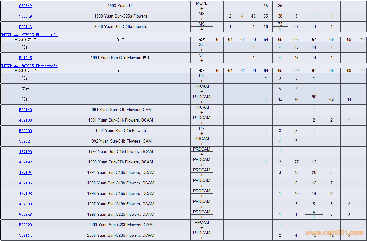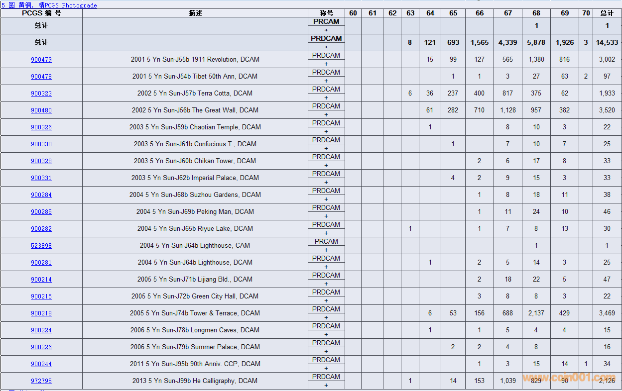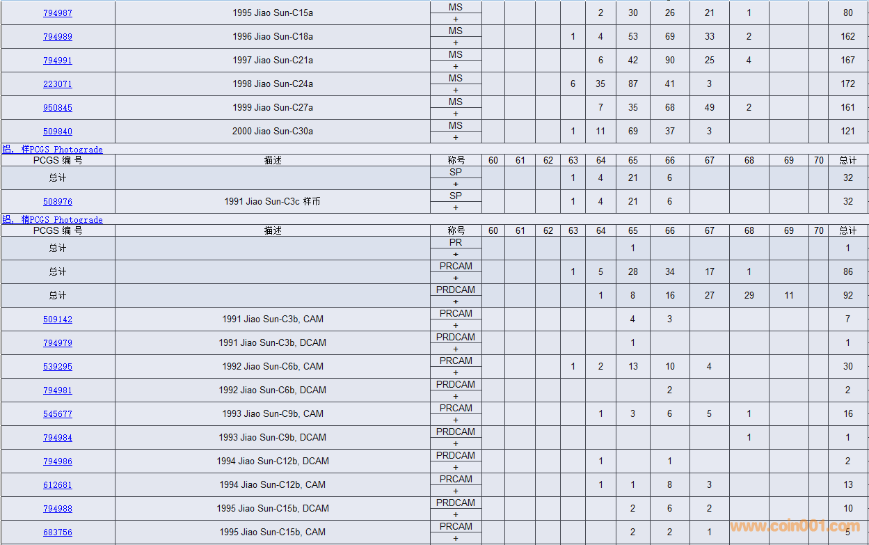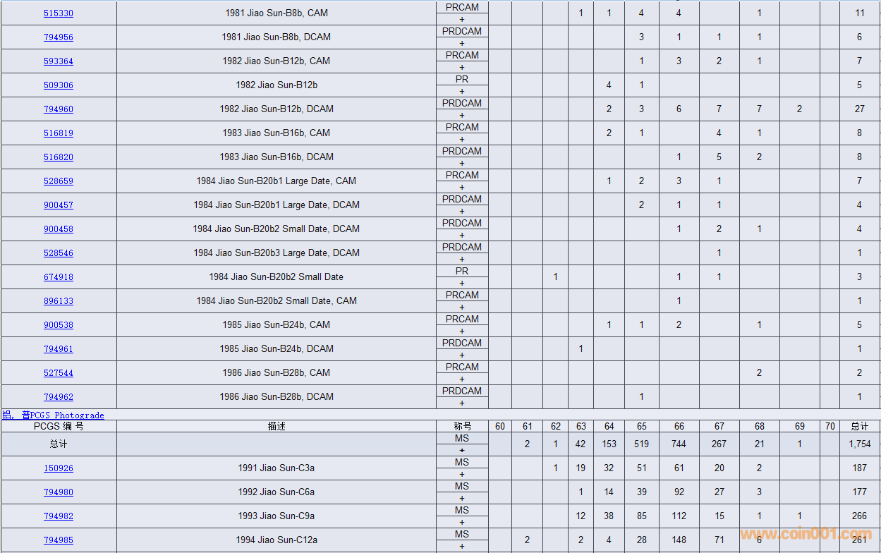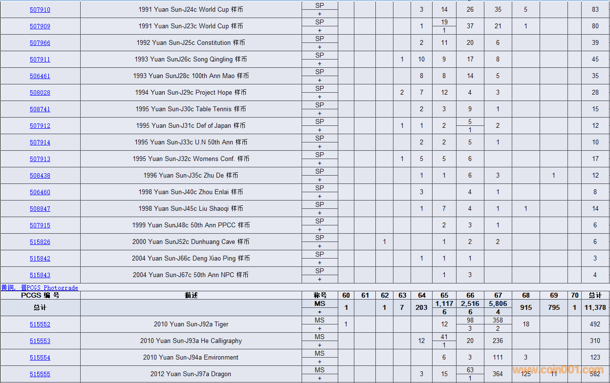 PCGS硬幣評(píng)級(jí)數(shù)量報(bào)告( ..