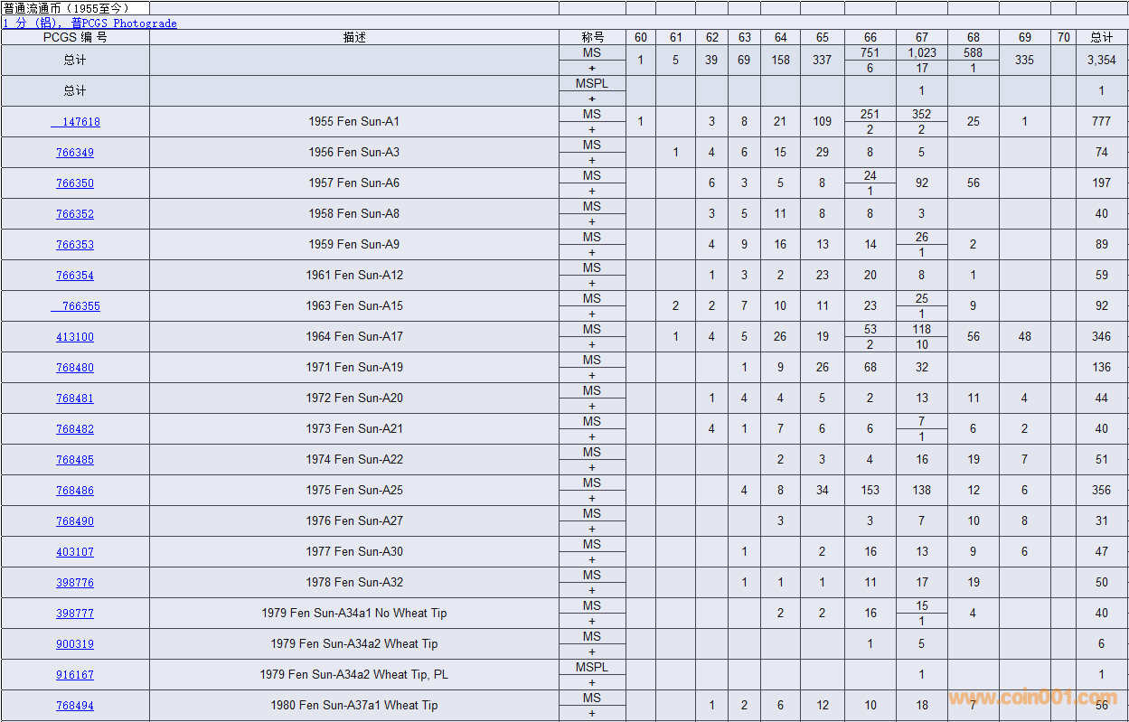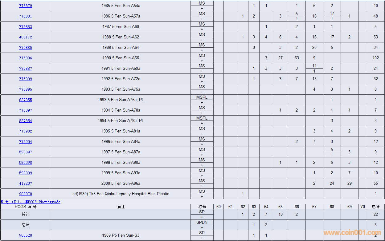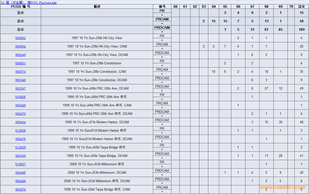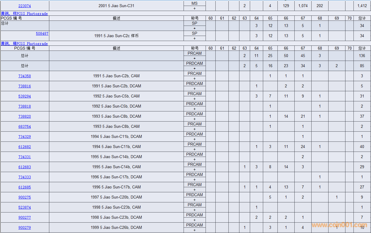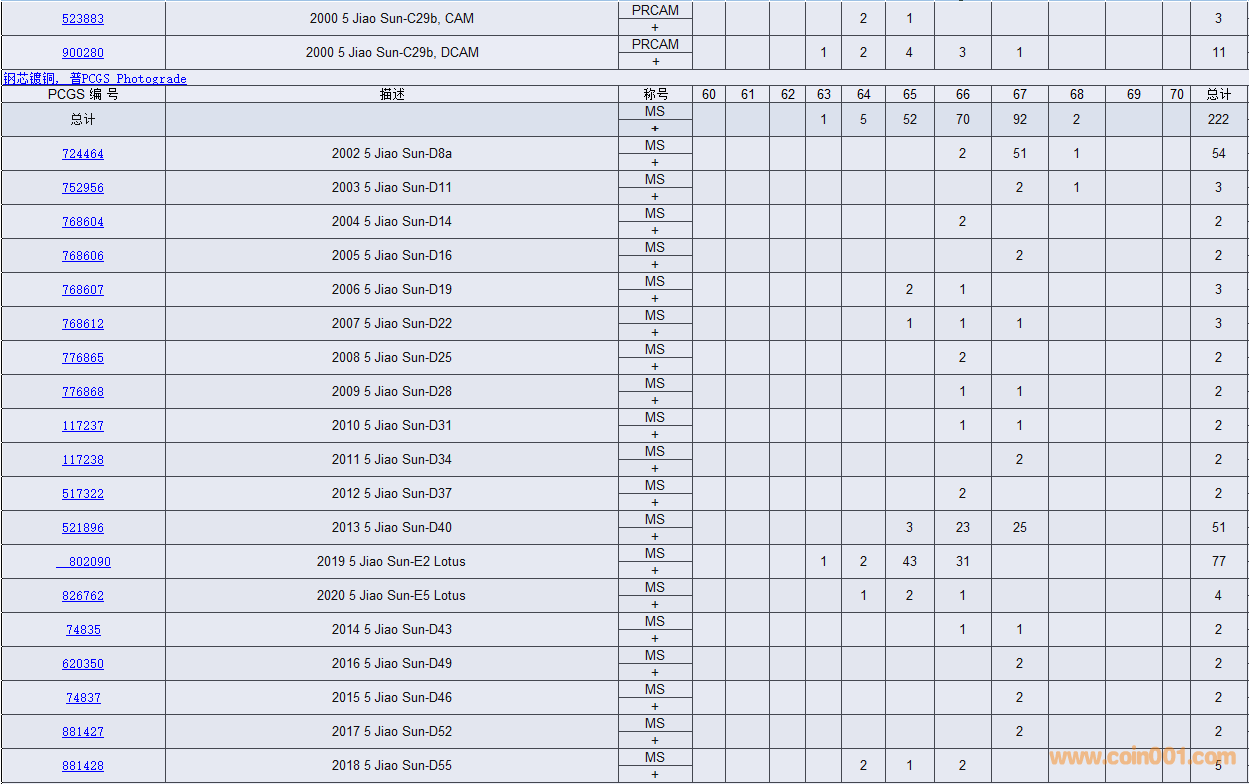 PCGS硬幣評(píng)級(jí)數(shù)量報(bào)告( ..