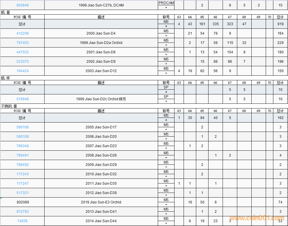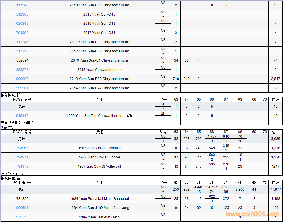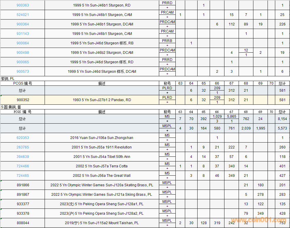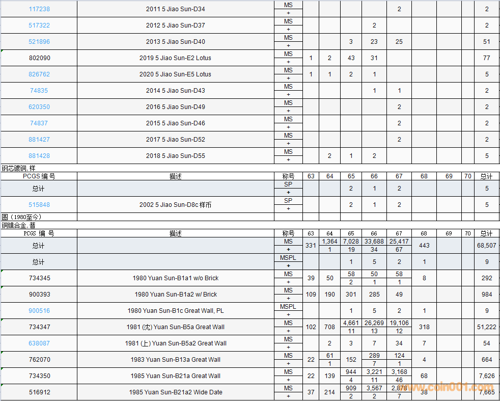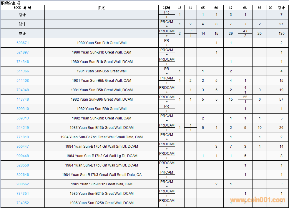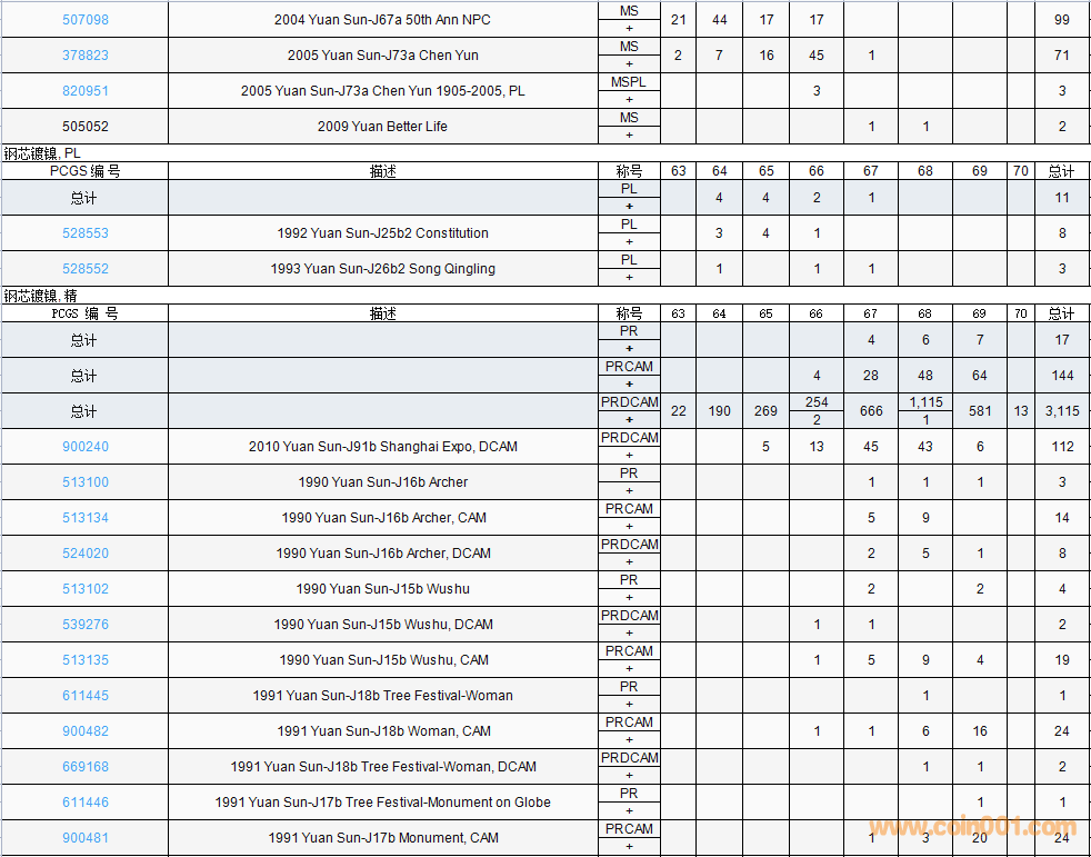 PCGS硬幣評級數(shù)量報告( ..