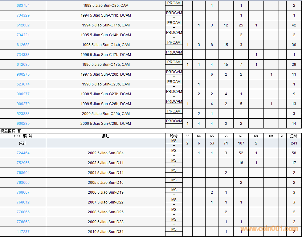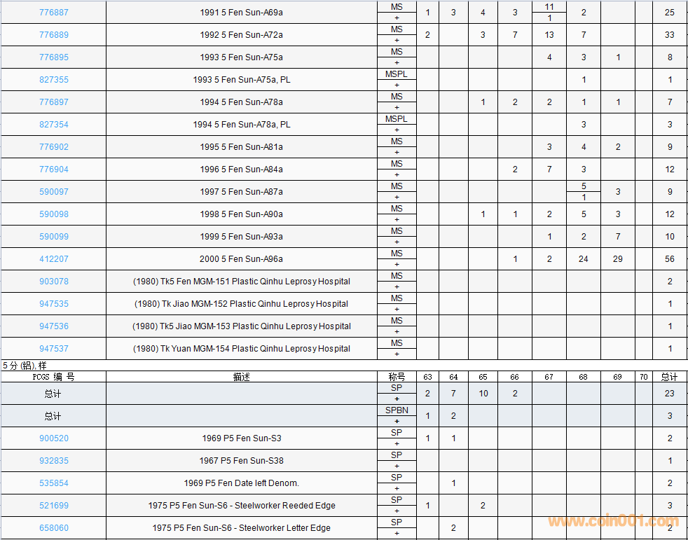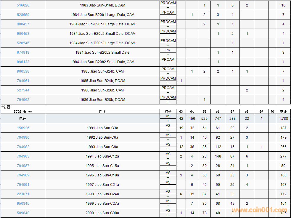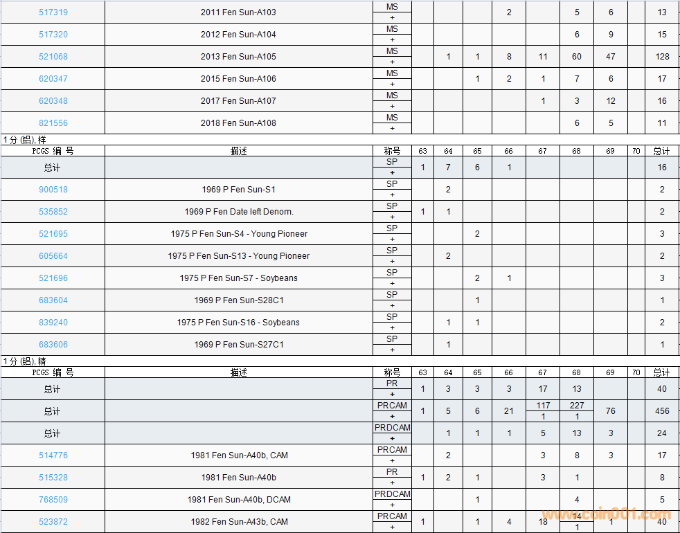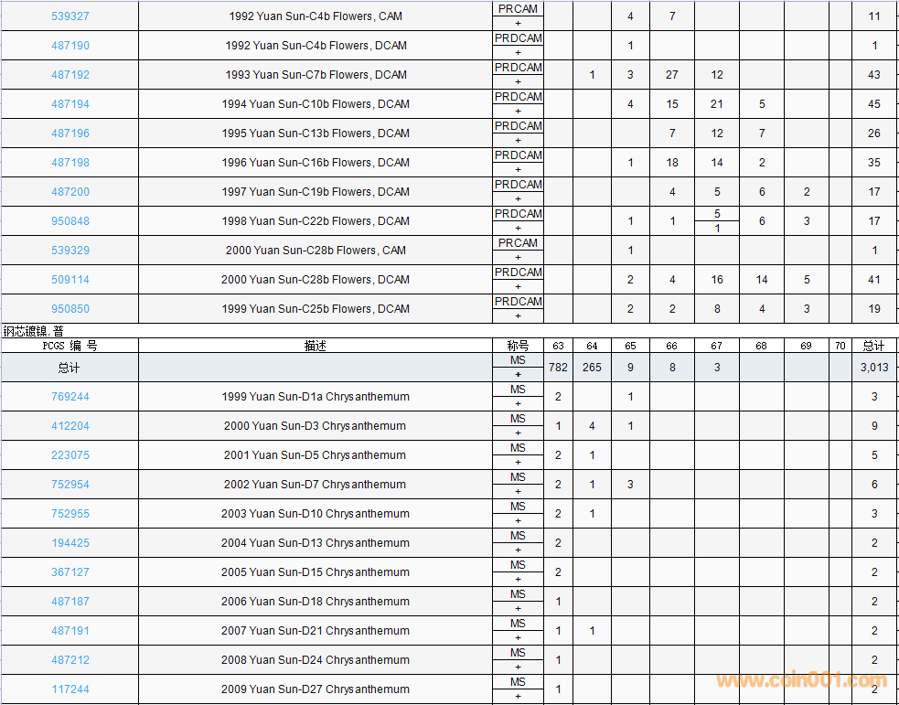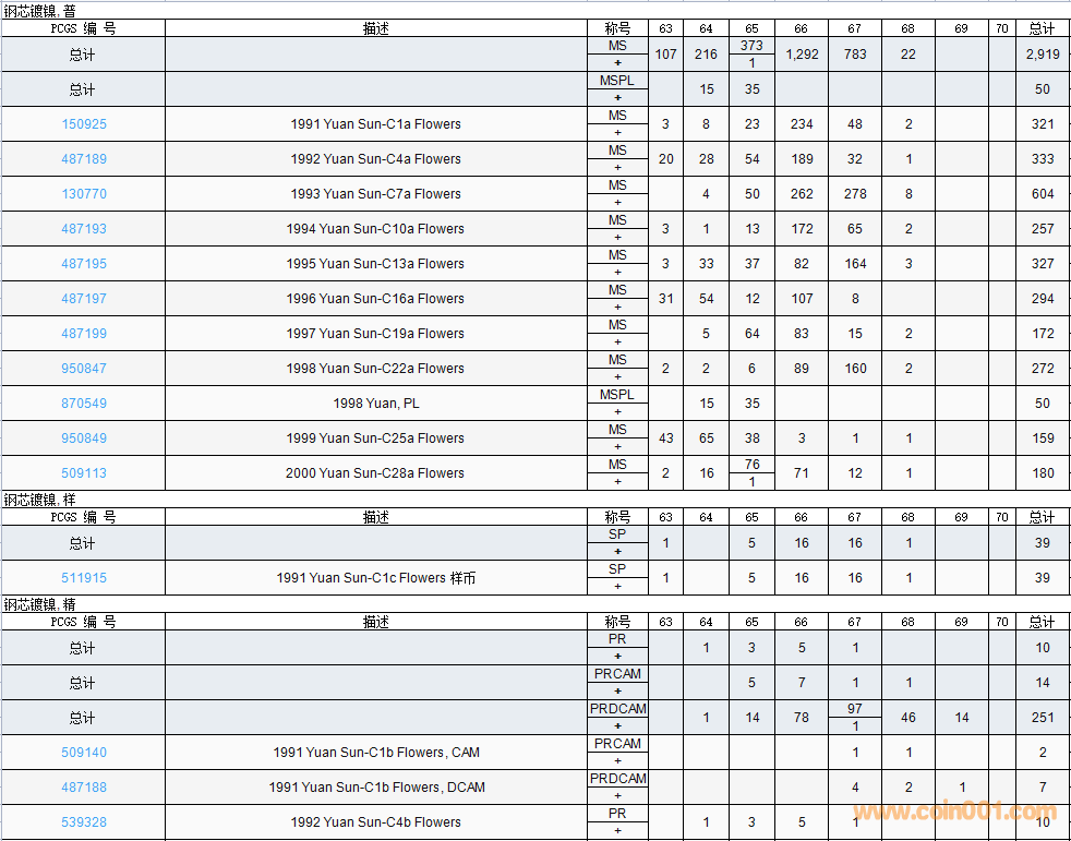 PCGS硬幣評級數(shù)量報告( ..