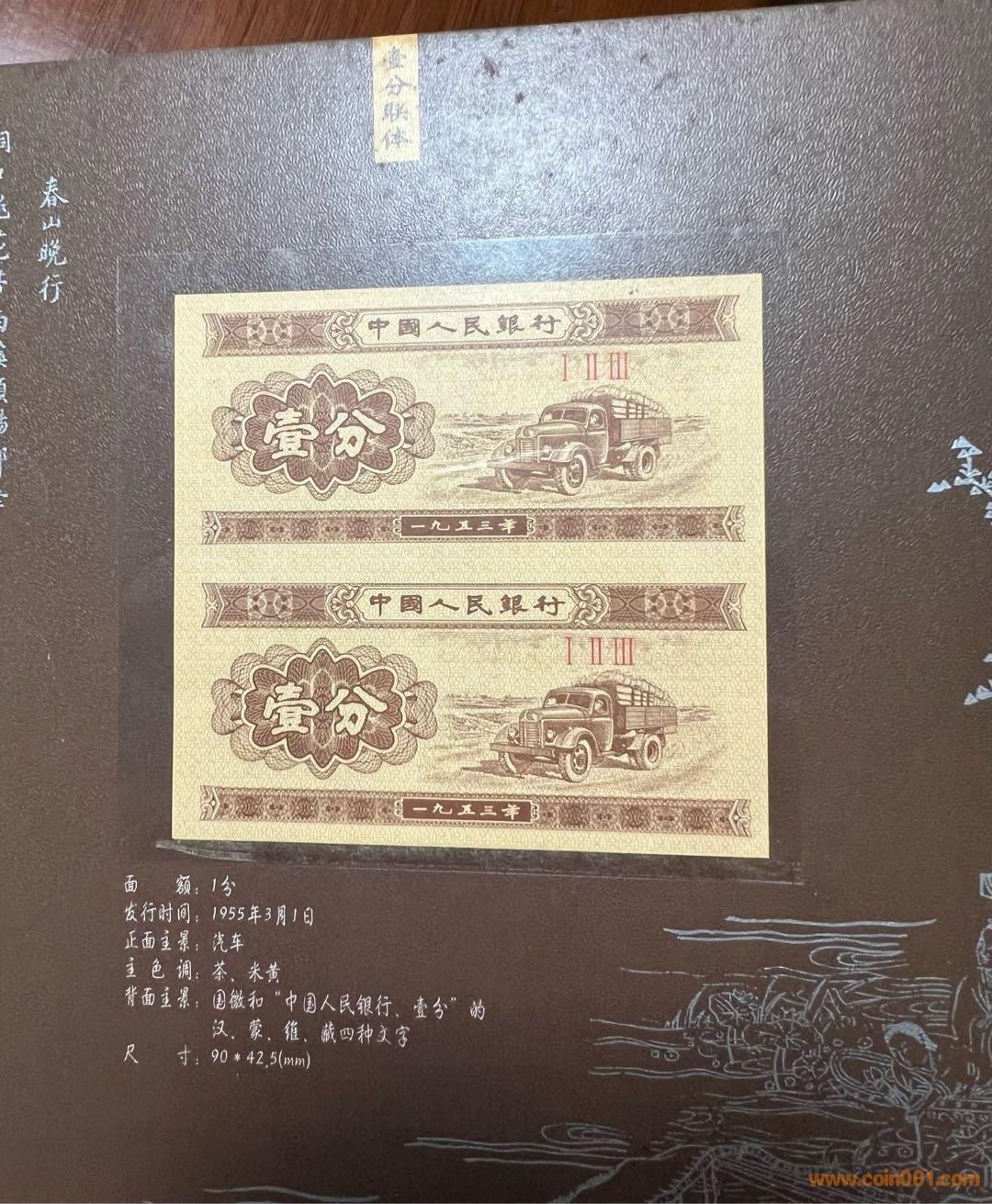 1分,2分,5分二連體紙幣也是為了紀念我國紙分幣退出流通而專門發(fā)行的紀念冠(I II III)冠號,未公開發(fā)行流通。