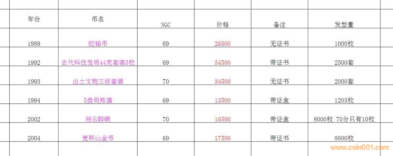 評級普通(精制)紀念幣交易