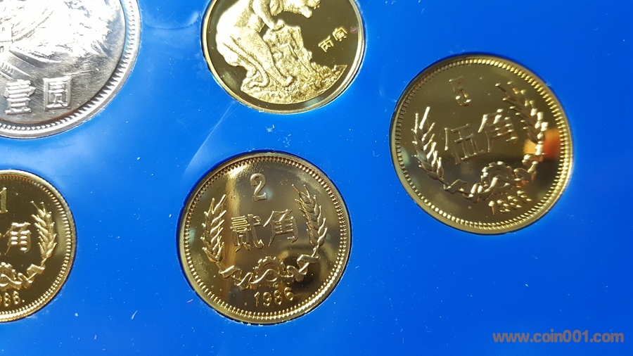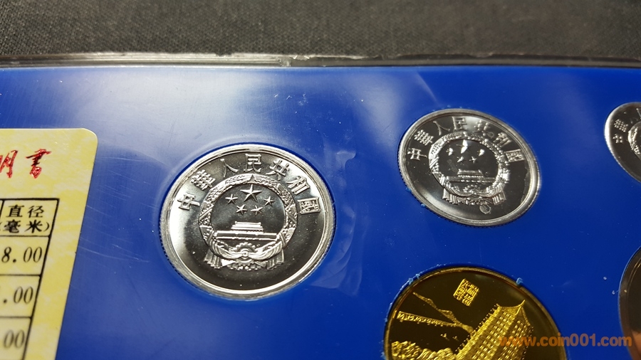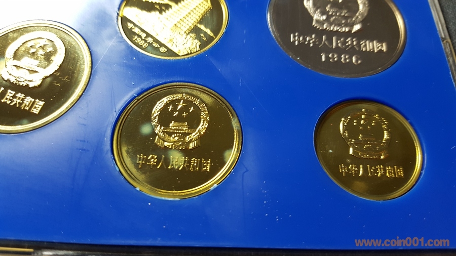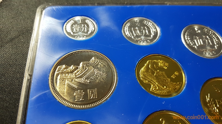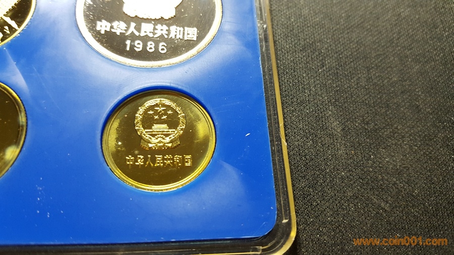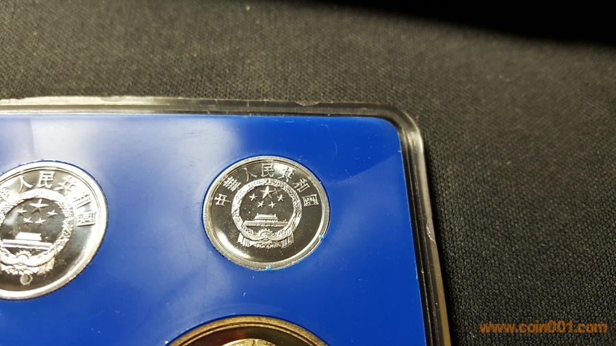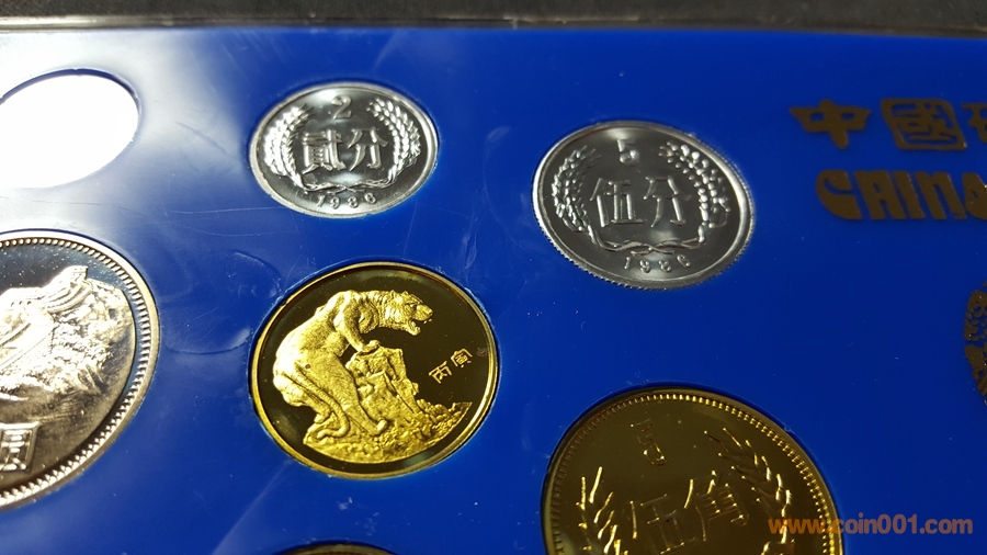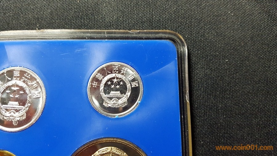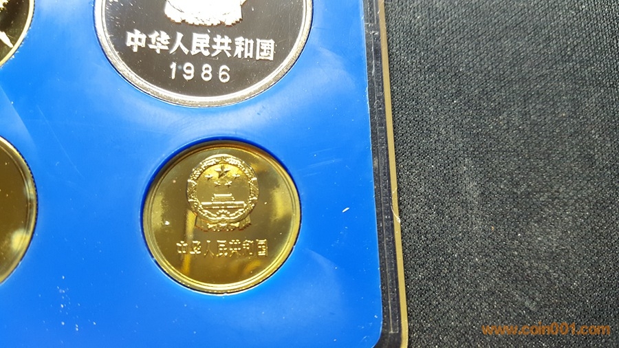 86精制長(zhǎng)城套幣,1元國(guó)徽重噴砂,極美;角幣分幣鏡面感一流,角幣無(wú)明顯黑點(diǎn),有輕微霧化;虎章有兩個(gè)小黑點(diǎn)。幣章底板都很好,無(wú)明顯劃痕硬傷,86原冊(cè)里面這本算得上是頂級(jí)品相了。