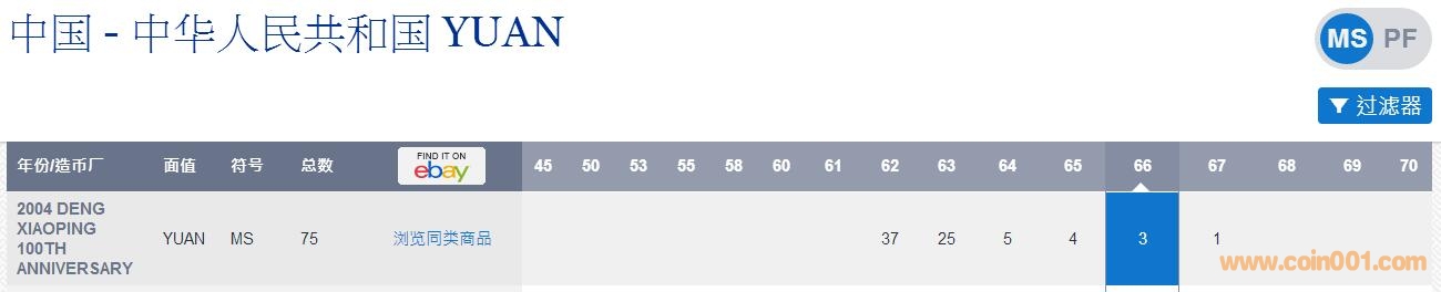 鄧小平MS66,亞軍分,數(shù)據(jù)庫(kù)只有3枚,1200出;