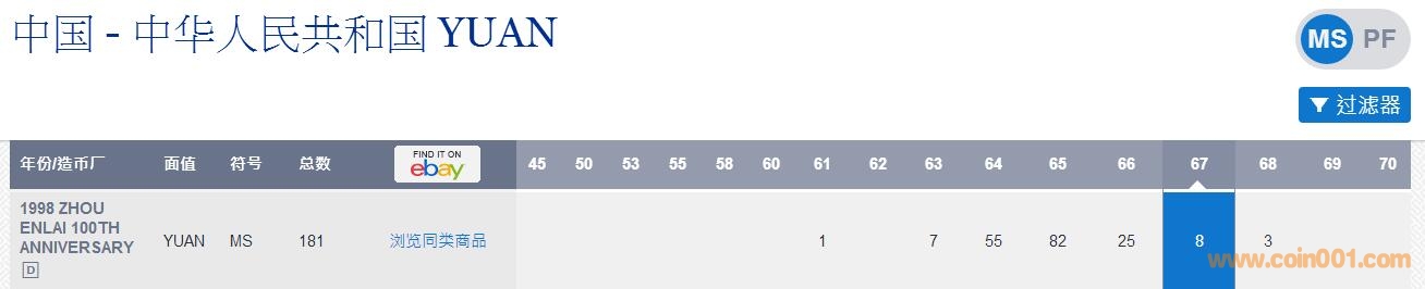 周恩來(lái)MS66,分,數(shù)據(jù)庫(kù)25枚,600出;