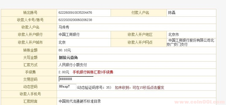 付款方 賬號 收款方 賬號 6228480010607201315