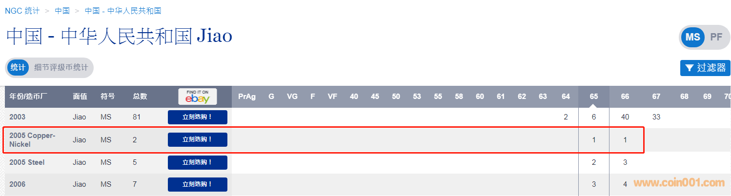 帶著疑問我查找了NGC的評級幣統(tǒng)計數(shù)據(jù),果然在一角的統(tǒng)計目錄里找到了它的評級記錄。如果排除同一枚砸盒重復(fù)評級的可能性,那它至少有兩枚存世。