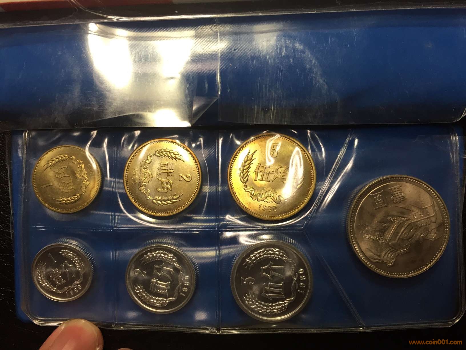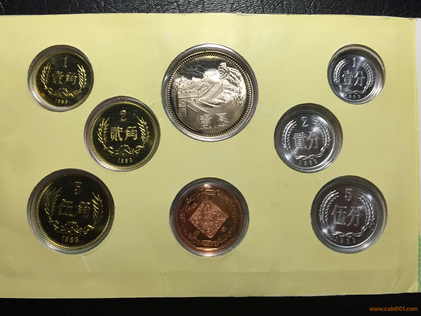 2.1983精制長(zhǎng)城套幣。幣品相極好十分難得,元幣漂亮年號(hào)處稍有輕微霧化圖片正面劃痕是冊(cè)外的,角幣品相一流目測(cè)只有5角有一極小黑點(diǎn)。售價(jià):5800元
