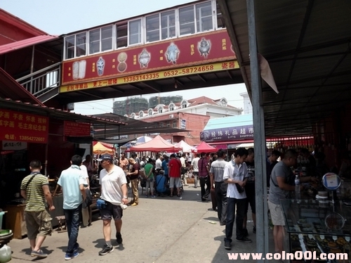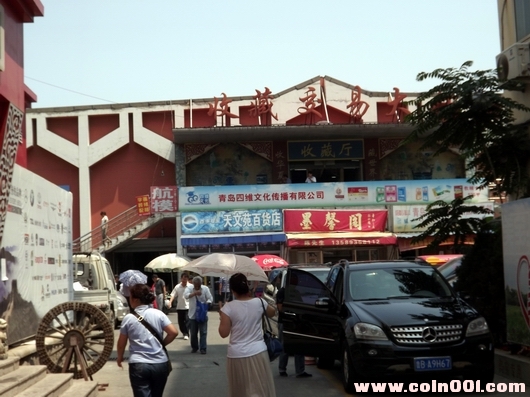 早就聽(tīng)說(shuō)青島人文、海灘美景如畫(huà)。趁著端午小長(zhǎng)假自由行去看看大海沙灘、德國(guó)建筑。行程安排必到青島文化收藏市場(chǎng)看看能否撿撿漏?高興去失望歸,市場(chǎng)較為零亂,各類(lèi)如玉器、圖書(shū)、工藝品比專(zhuān)營(yíng)郵幣卡多;找了半天才看見(jiàn)七八家主營(yíng)郵票、錢(qián)幣店鋪,規(guī)模不大,攤位購(gòu)買(mǎi)者也稀稀落落。沒(méi)有自己喜歡的東東隨便拍了幾張市場(chǎng)照片。中午與我神交已久的青島幣友盛情款待才彌補(bǔ)遺憾。