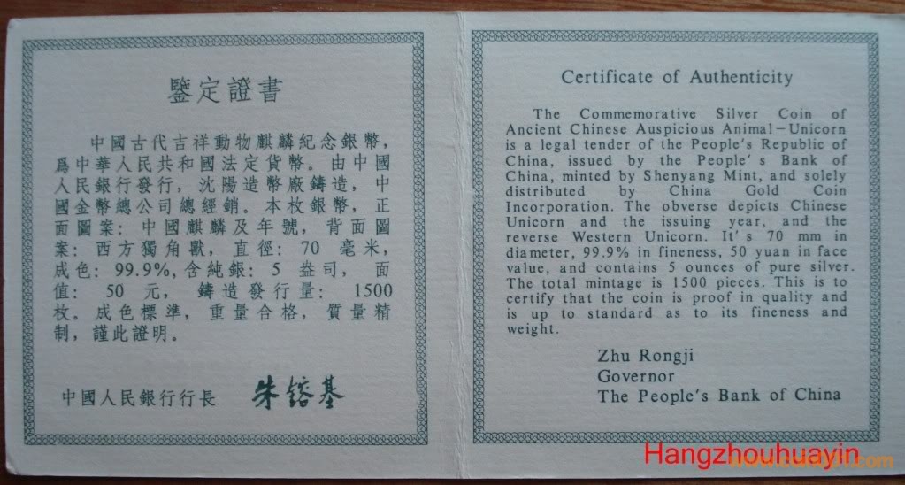 1995年5盎司麒麟銀幣17500元