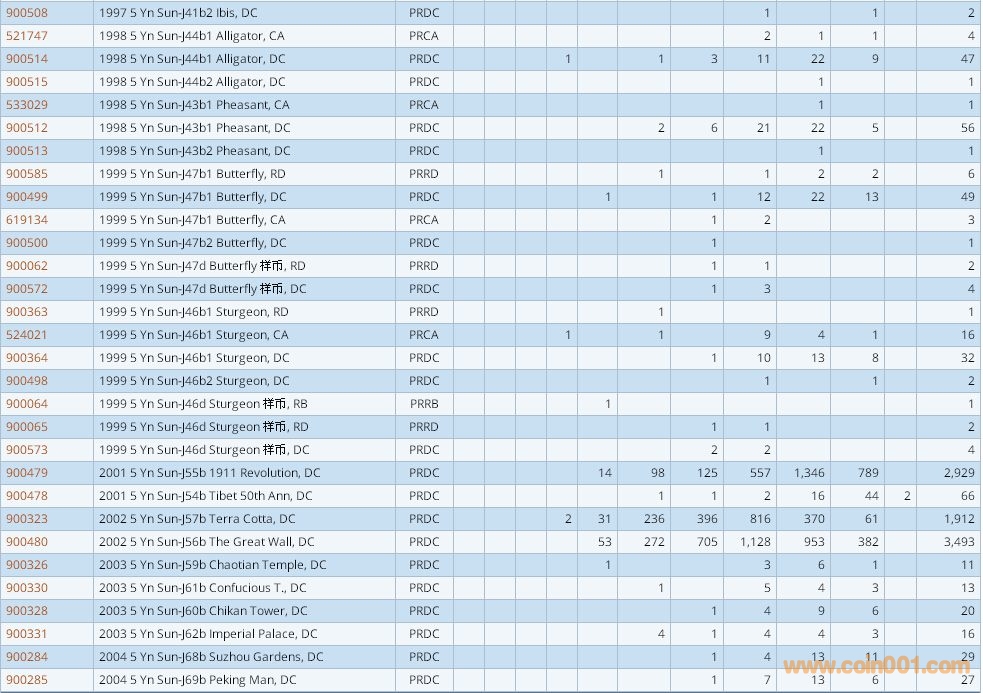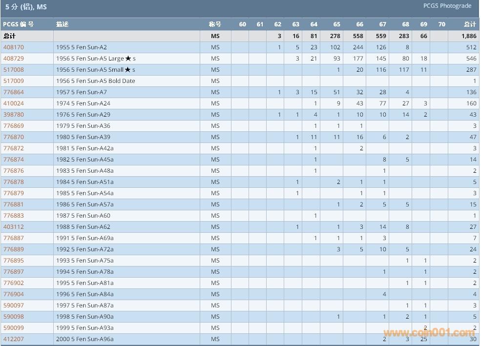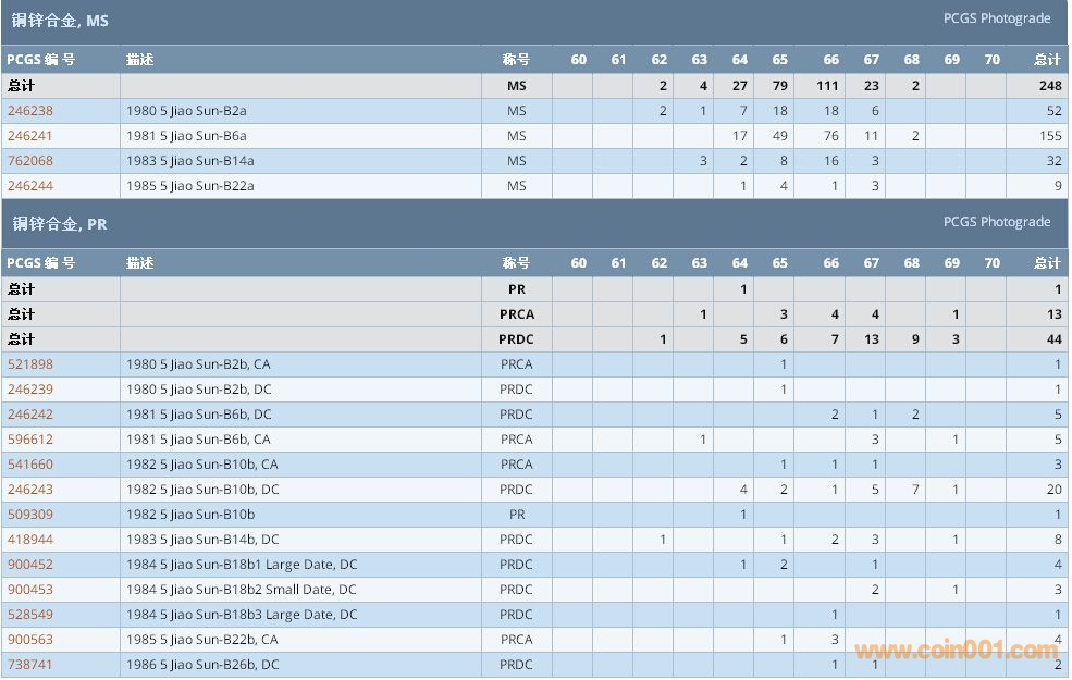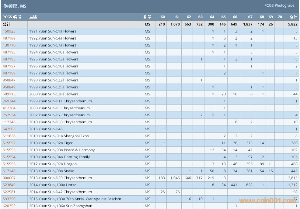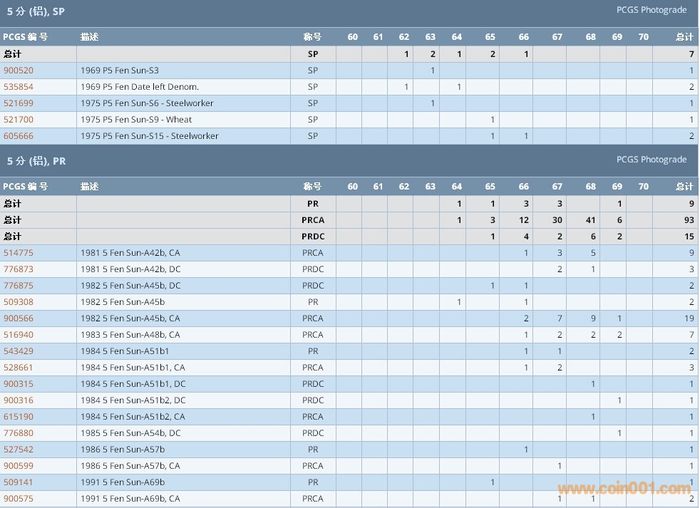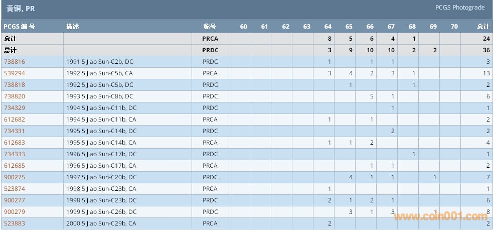 PCGS硬幣評級數(shù)量報告 ..