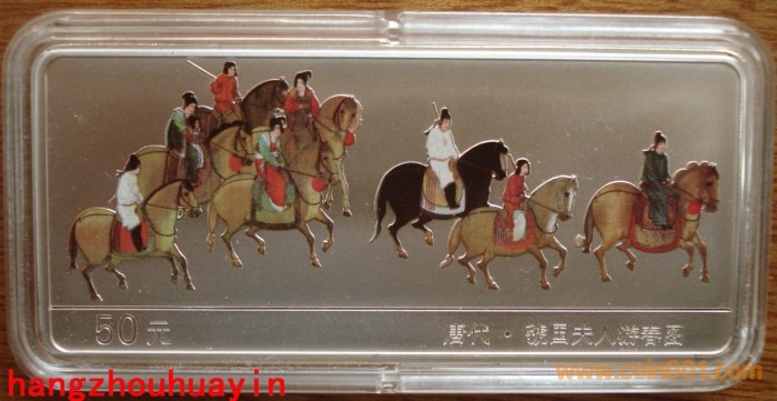 1999年5盎司 虢國(guó)夫人游春圖彩銀幣3800元