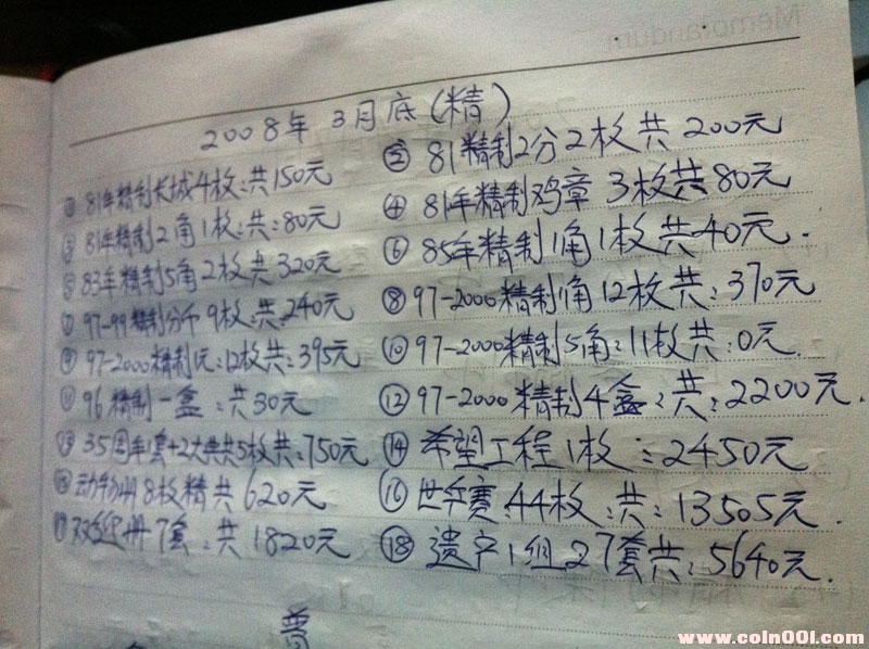 圖片展示我到2008年3月時,就是4年前的硬幣和紀念幣。這兩個小版塊都是大家比較關(guān)注的。