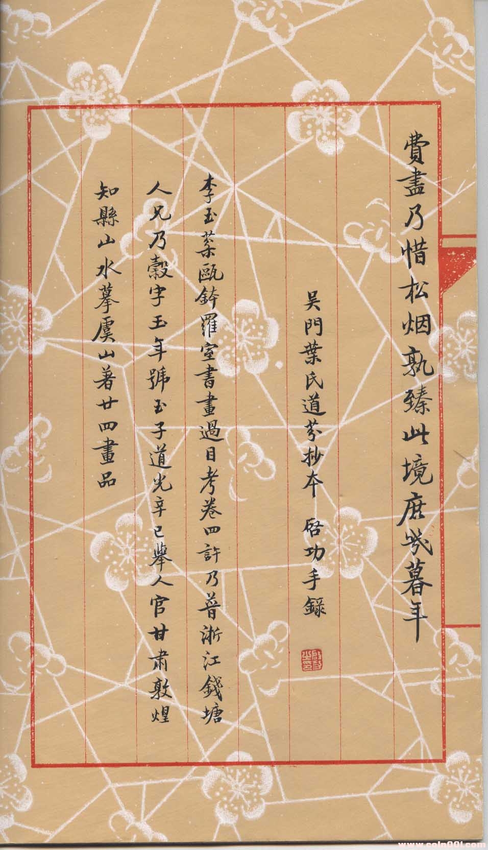 按:立論品畫之于中國(guó),以南齊謝赫所著《古畫品錄》為其端。謝氏以所定“六法”為評(píng)畫準(zhǔn)繩,按畫家成就及其優(yōu)劣標(biāo)分六品二十七人,每人均詳加評(píng)語(yǔ),手眼獨(dú)具,為百代之宗;自此而后,畫品之作,歷代不乏其人。黃氏二十四畫品乃有清畫品之佳作,上承謝氏遺意,惟其體例則仿唐司空表圣《二十四詩(shī)品》而作。渠于小序曰:“昔者畫繢之事,備于百工;兩漢以還,精于學(xué)士。謝赫姚最,并有書傳,俱稱畫品。于時(shí)山水猶未分宗,止及像人肖物。鉞涂抹余閑,乃仿司空表圣之例,著畫品二十有四篇,專言林壑理趣,管蠡之見(jiàn),曾未得其二三,后有作者,為其前驅(qū)可耳。”