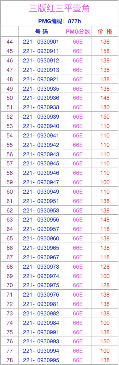 三版刀評(píng)PMG紅三平壹 ..
