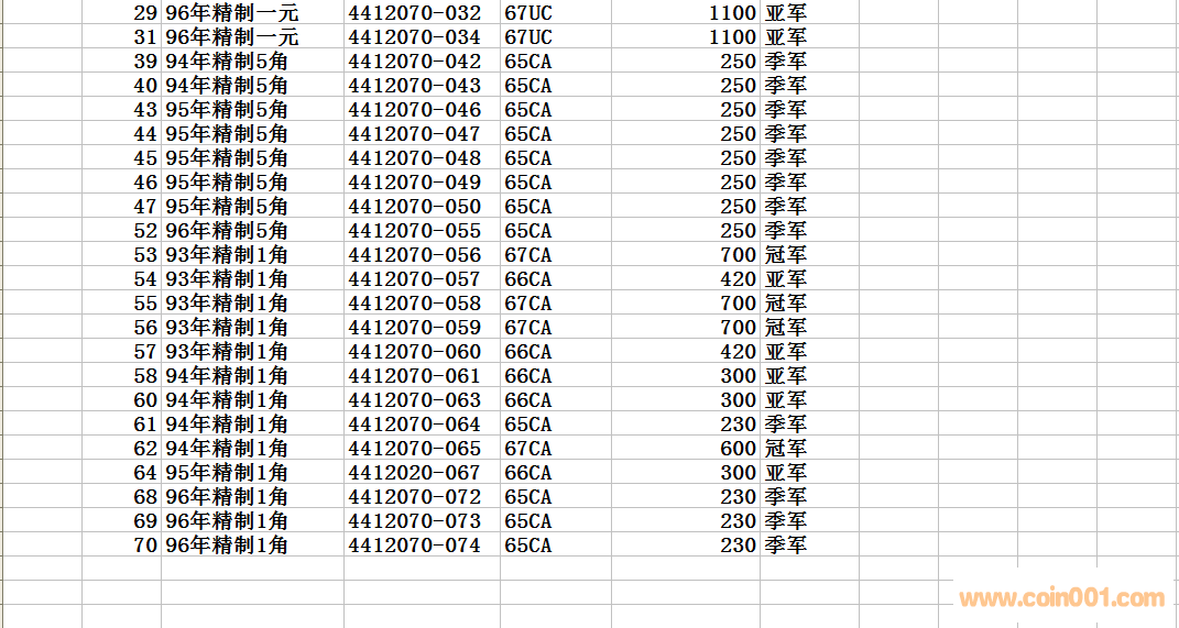 評級普通(精制)紀念幣交易