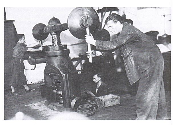 圖167 人力操作的翻模壓機(jī)。壓機(jī)的結(jié)構(gòu)有助于操作工精心控制壓制過程