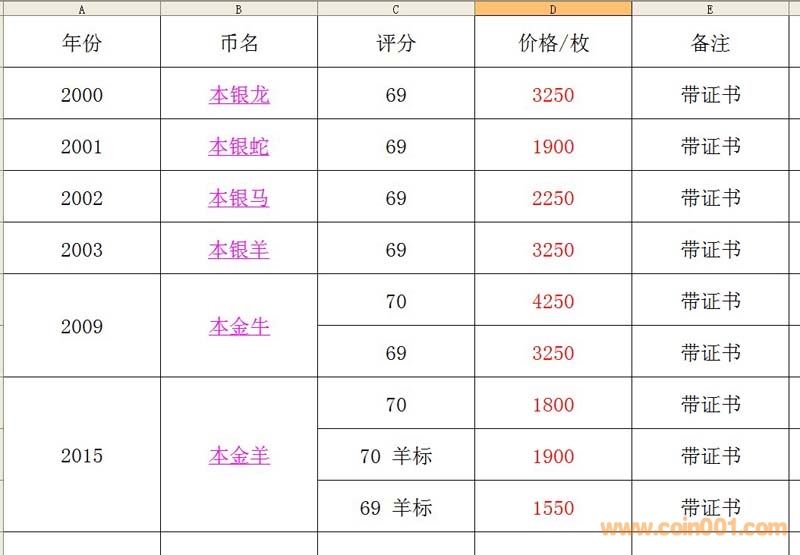 評級普通(精制)紀念幣交易