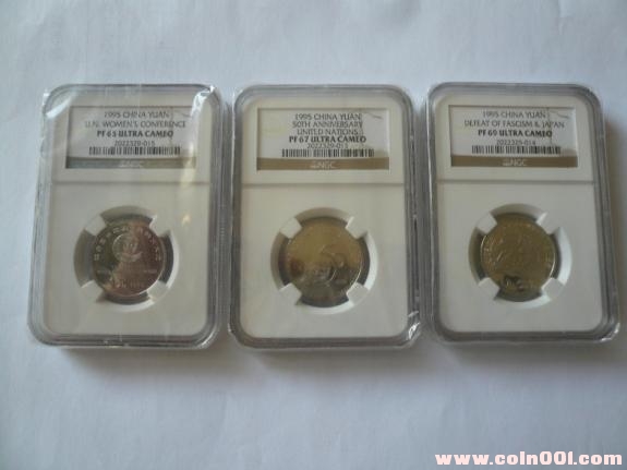 先說兩句,據(jù)我所知小三珍中抗戰(zhàn)容易出高分,不過聽說PF69UC應(yīng)該是第一枚也是唯一的一枚吧,嘿嘿,聯(lián)合國不容易出高分,在小三珍里是精制度比較一般的,不過PF67分UC聽說也是第一枚,不過我的世婦會分?jǐn)?shù)不過,僅僅PF65UC,現(xiàn)在世婦會最高分應(yīng)該是PF67UC;