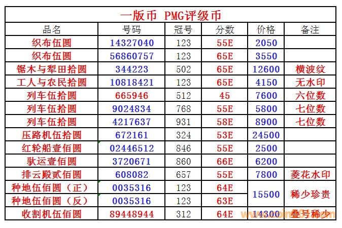 評級普通(精制)紀念幣交易
