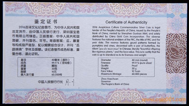 出16年瓜瓞綿綿銀幣, ..
