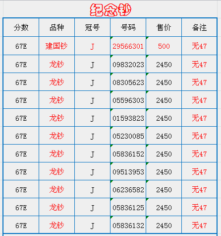 評級普通(精制)紀念幣交易