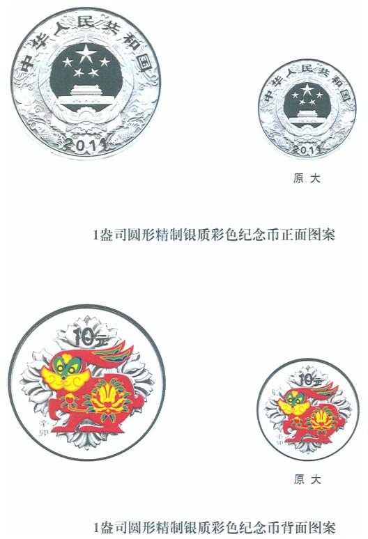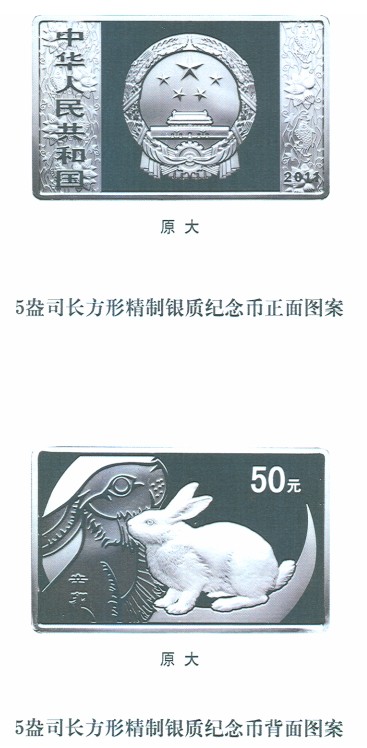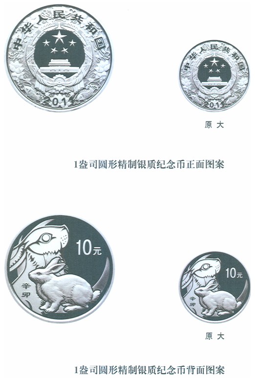 中國人民銀行定于2010年10月26日發(fā)行2011中國辛卯(兔)年金銀紀(jì)念幣一套。該套紀(jì)念幣共15枚,其中金幣8枚,銀幣7枚,均為中華人民共和國法定貨幣?! ?