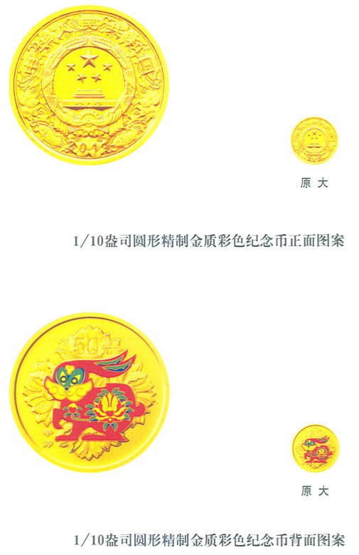 1/10盎司圓形金質(zhì)彩色紀(jì)念幣、5盎司圓形金質(zhì)彩色紀(jì)念幣、1盎司圓形銀質(zhì)彩色紀(jì)念幣、5盎司圓形銀質(zhì)彩色紀(jì)念幣?! ?