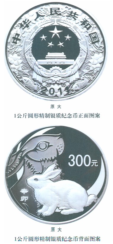 (十四)1公斤圓形銀質(zhì)紀(jì)念幣為精制幣,含純銀1公斤,直徑100毫米,面額300元,成色99.9%,最大發(fā)行量3800枚。