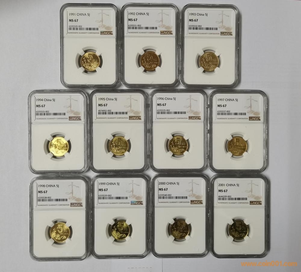 91-01梅花一套NGC MS67同分同尾號(hào)--1600元起,不同尾號(hào)不同價(jià)格,有尾號(hào)2、6、16、17、19。