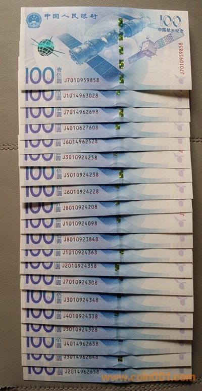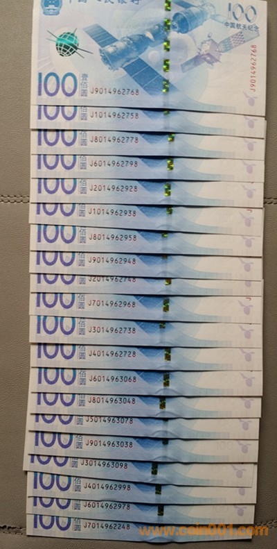 低價出航天鈔單尾8吉祥號2組,每組100張。