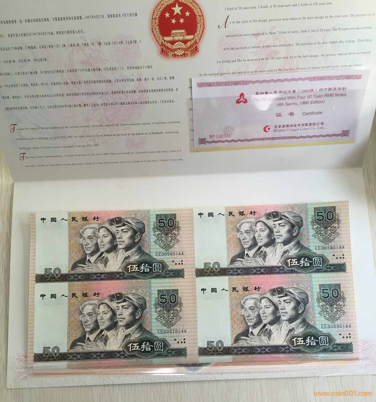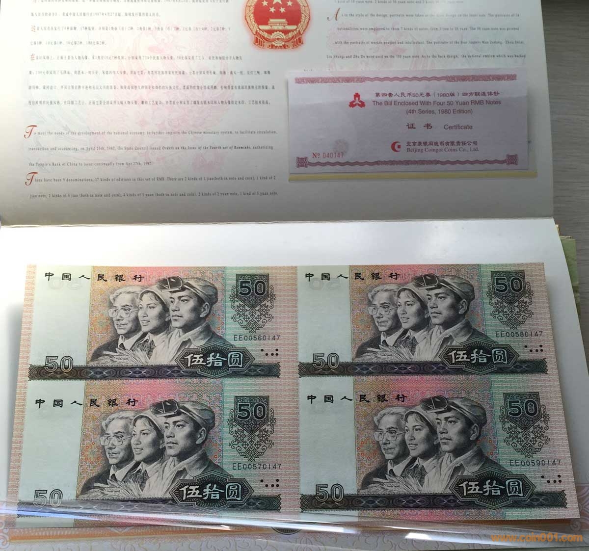 出售:四版 8050 四連體 絕品 連體鈔 3本