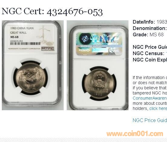 83年長(zhǎng)城幣NGCMS68 初鑄 ..
