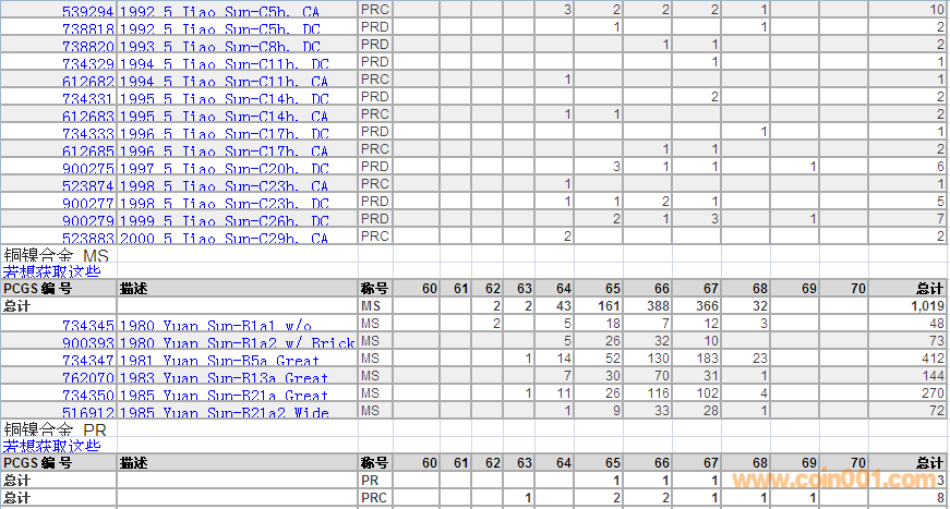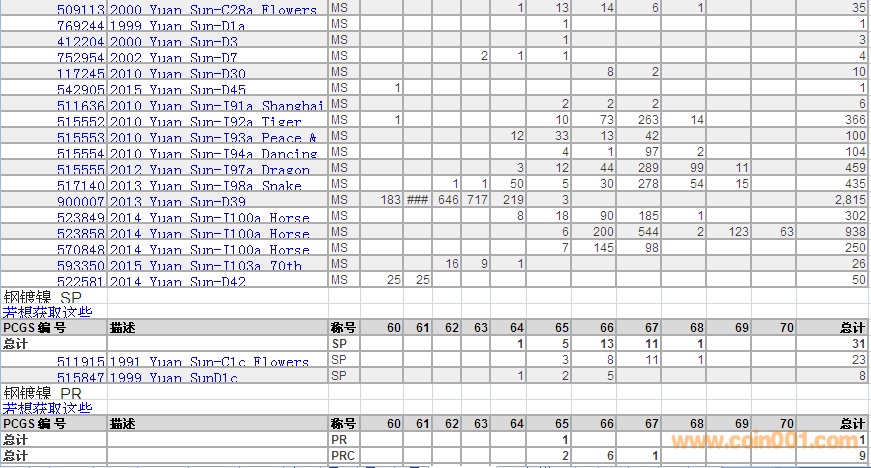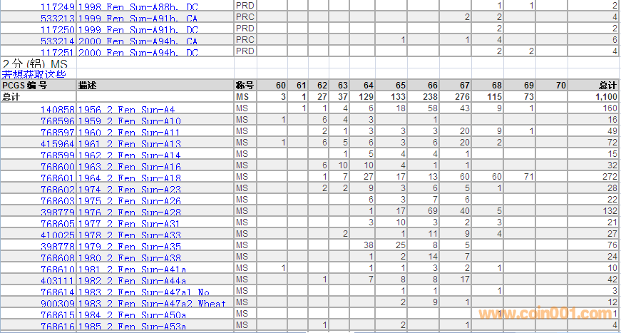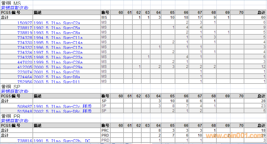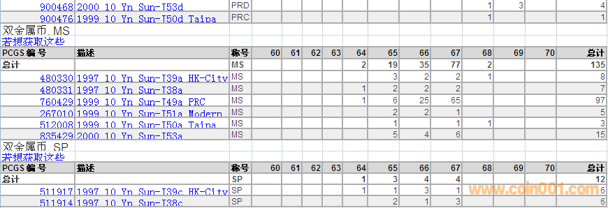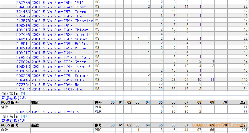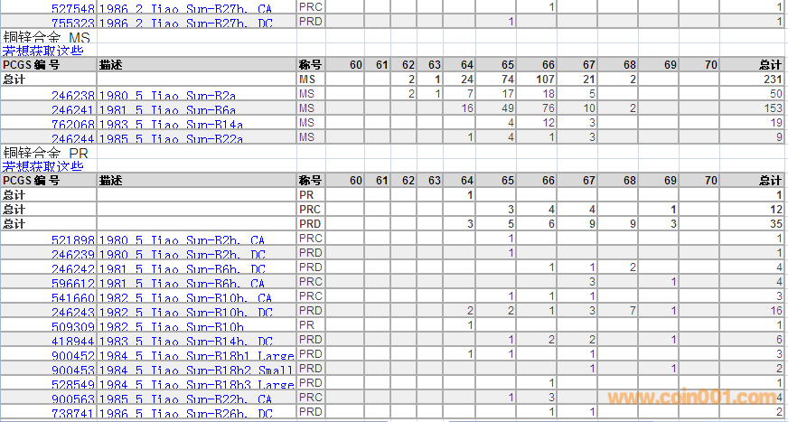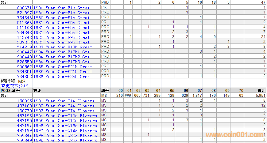 PCGS硬幣評級數(shù)量報(bào)告 ..