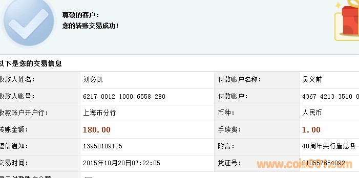 引用 引用第10樓吳義前于2015-10-20 07:23發(fā)表的 :確認(rèn)央行、造總各一盒,已匯您建行