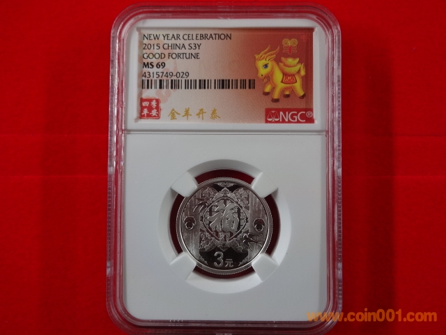 2015賀歲3元銀幣8克 【金羊開泰】??NGC特制標(biāo)簽 金羊特制標(biāo)簽號段為4315749和4315750每個號段30枚,計劃最多送評200枚