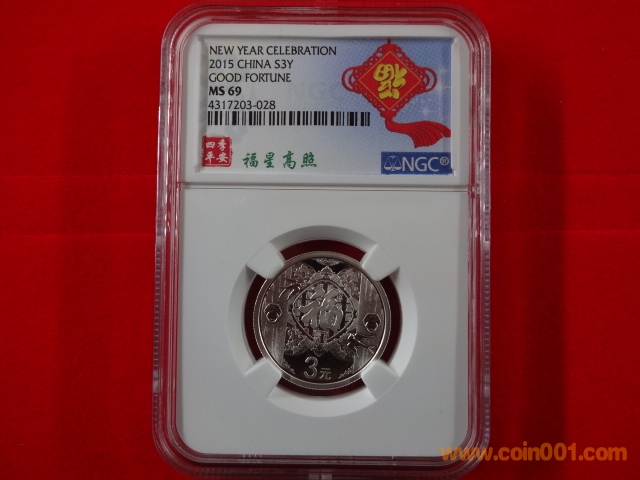 2015賀歲3元銀幣8克 【福星高照】??NGC特制標(biāo)簽 福字特制標(biāo)簽號段為4317201至4317203每個號段30枚,計劃最多送評200枚