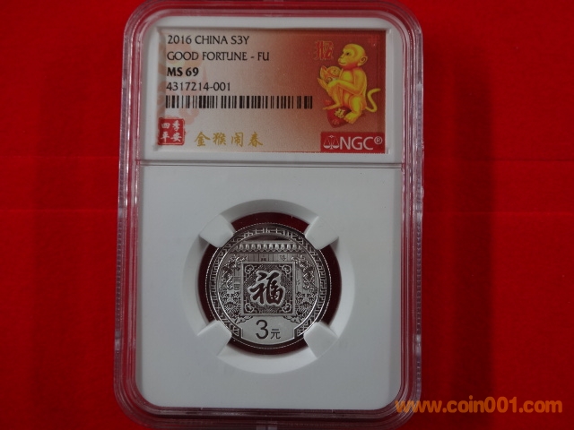 2016賀歲3元銀幣8克 【金猴鬧春】??NGC特制標(biāo)簽 金猴特制標(biāo)簽號段為4317214和4317215每個號段30枚,計劃最多送評300枚