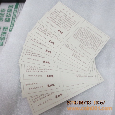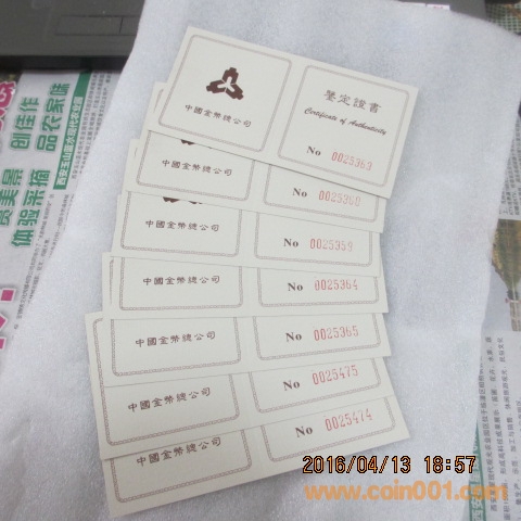 出售3元修長城證書7個
