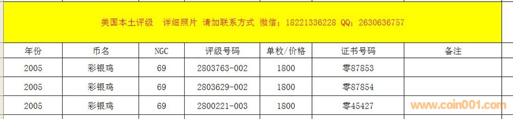出評級69分2005彩銀雞&n ..
