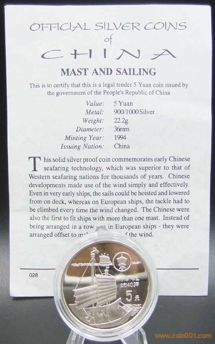 中國1994年船桅5元精制 ..