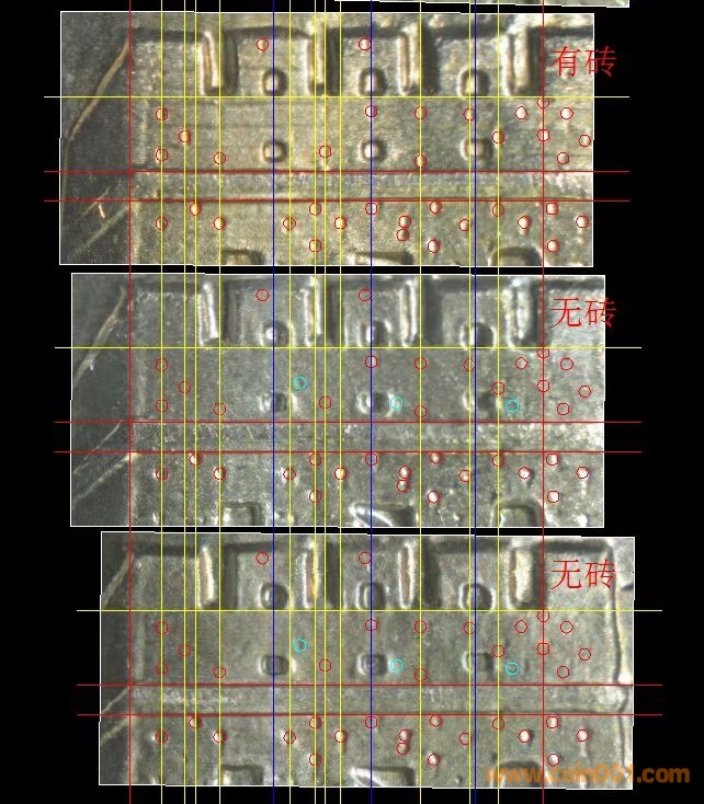 通過(guò)對(duì)比來(lái)看,有磚無(wú)磚城墻垛子下部的磚縫對(duì)應(yīng)非常好,80有磚墻垛子上的6個(gè)孔明顯要小,斷定有磚模具6個(gè)孔處的模具凸起要細(xì)小,所以就不存在從有磚模具修模到無(wú)磚模具,因?yàn)槟>叩耐蛊鸩糠钟纱笞冃∪菀祝尚∽兇髱缀醪豢赡?,不然代價(jià)太大。相反得出結(jié)論是:有磚模具是由無(wú)磚模具修模得來(lái)的結(jié)論。實(shí)際無(wú)磚的數(shù)量比有磚數(shù)量小的多得多,也應(yīng)證了這個(gè)觀點(diǎn)。