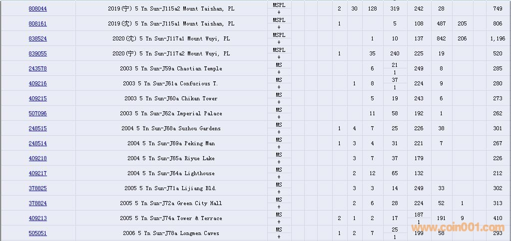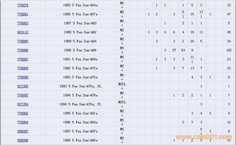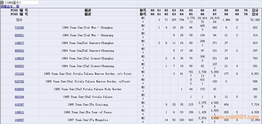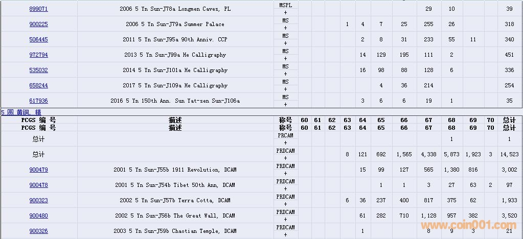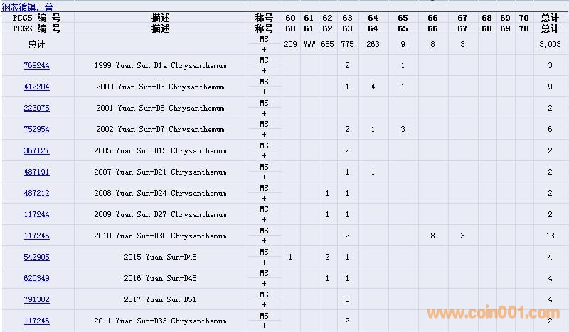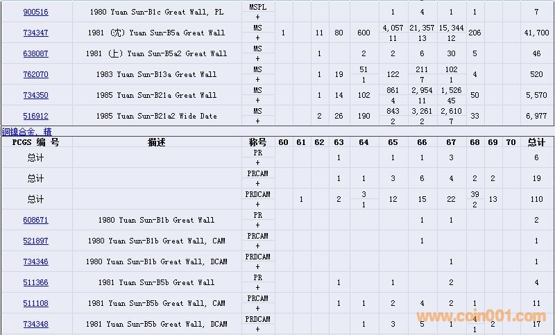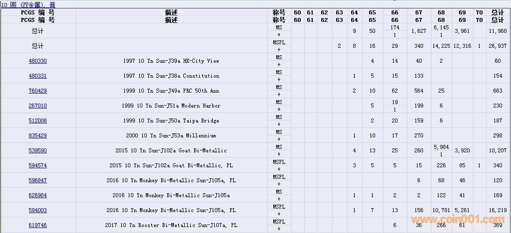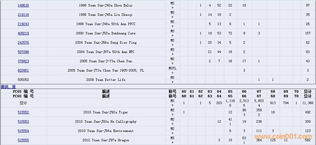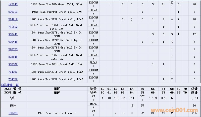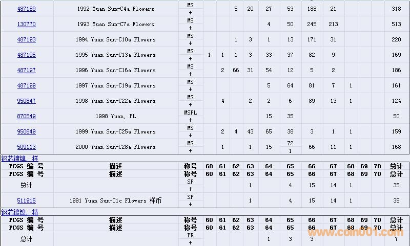 PCGS硬幣評(píng)級(jí)數(shù)量報(bào)告( ..
