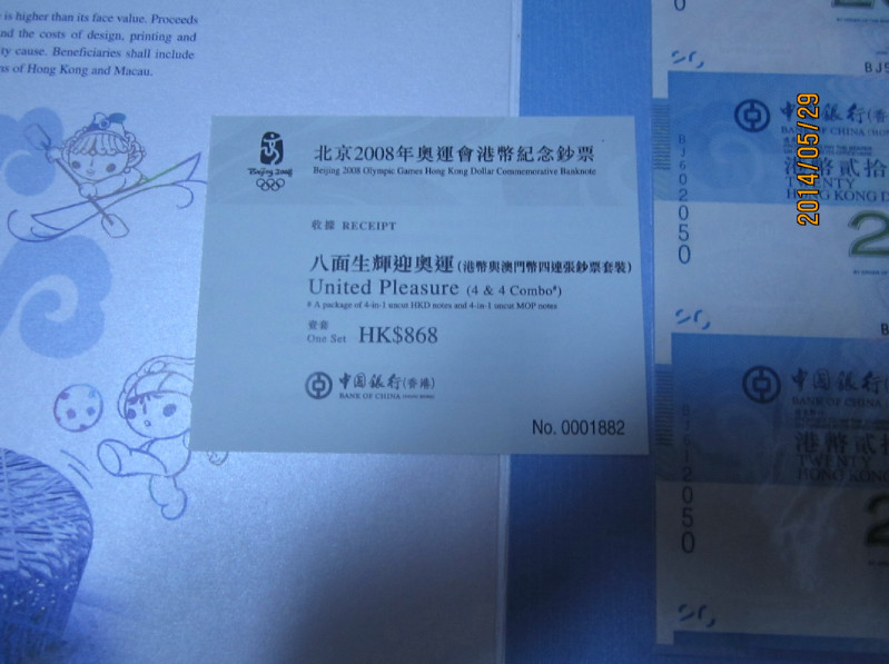 中銀香港于7月11日發(fā)行港幣20圓面額的北京2008年奧運(yùn)會港幣紀(jì)念鈔票以迎接和紀(jì)念北京奧運(yùn)會。