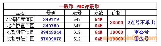 評級普通(精制)紀念幣交易