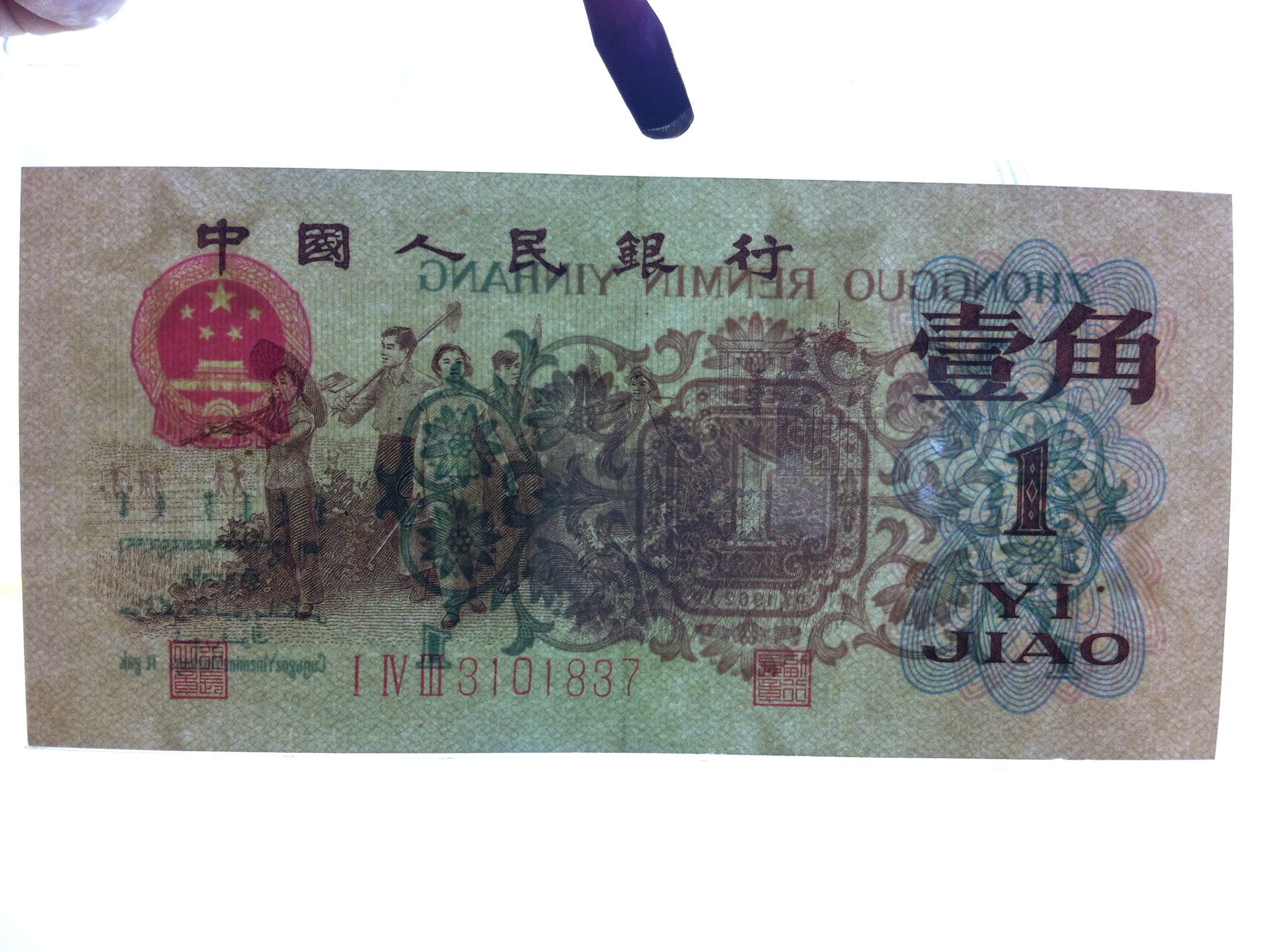 背綠水印三連號