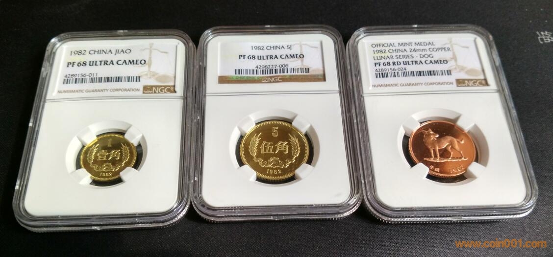 82年精致幣PF68UC三枚.1角5角和狗章