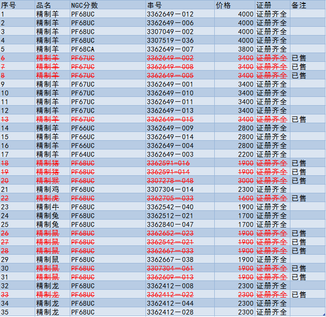 引用 引用第16樓王寶寶于2016-04-13 12:26發(fā)表的 :電聯(lián)確認(rèn)67分羊4枚(3362649-002、3362649-005、3362649-008、3362649-015),68分鼠4枚(3362652-023、3362542-021、3307304-061、3362609-013),謝謝!??!