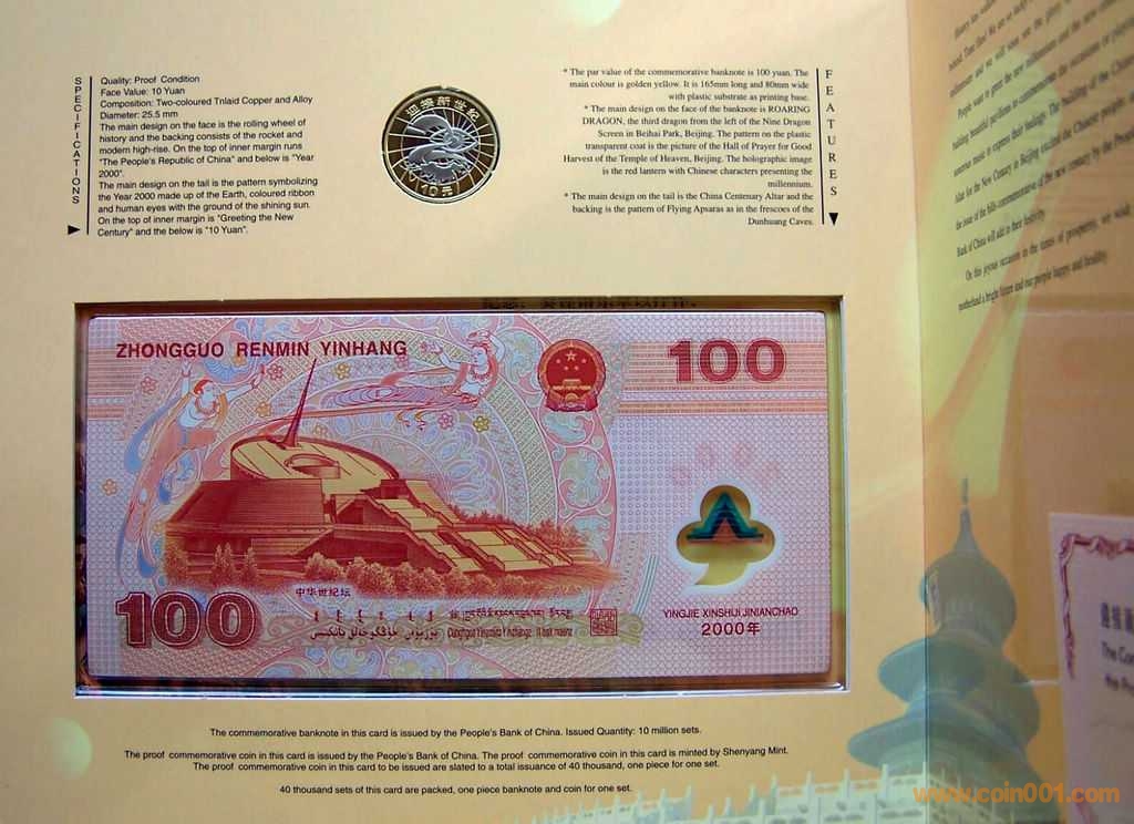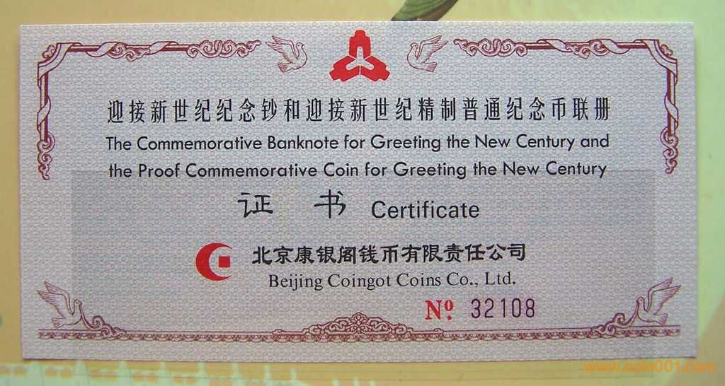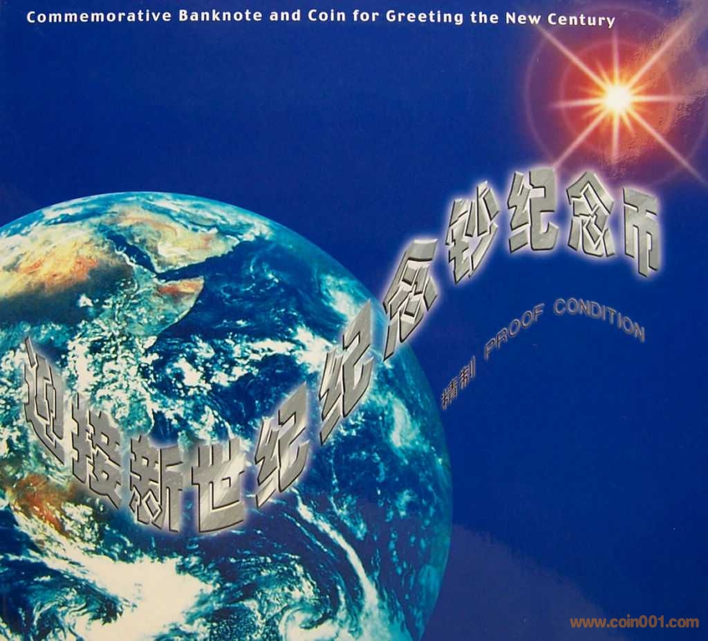 原包拆靚號原裝精制迎接新世紀(jì)幣+龍鈔一體兩聯(lián)冊,其中: